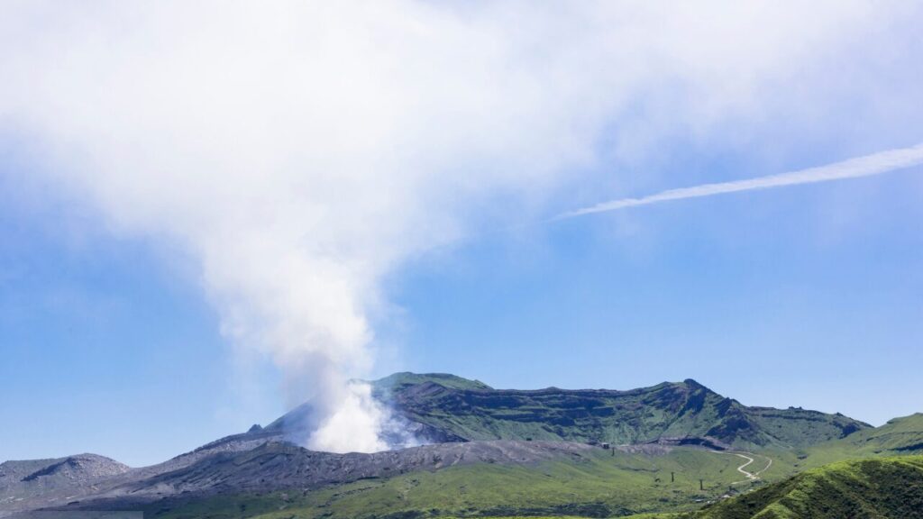 火山活動に伴い、阿蘇中岳火口からは常時火山ガスが流れています。そして風向きによっては熊本市内に火山灰が降ることも。火山灰は呼吸器系や目の症状を引き起こす場合があるため、注意が必要です。