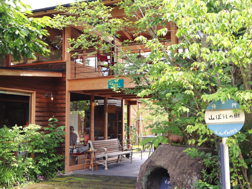 会場の「山ぼうしの樹(甲佐町)」は、約400坪の敷地に母屋を含む6棟の建物がゆったりと点在していて、食事やデザートも楽しめる心地よい場所。